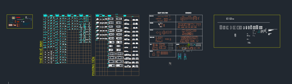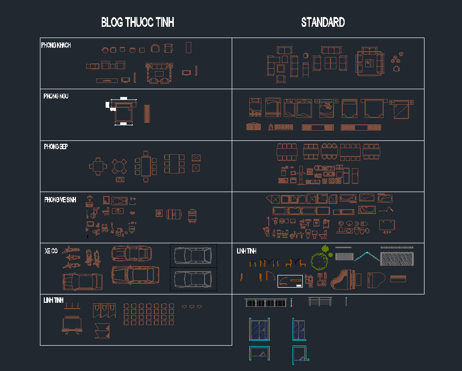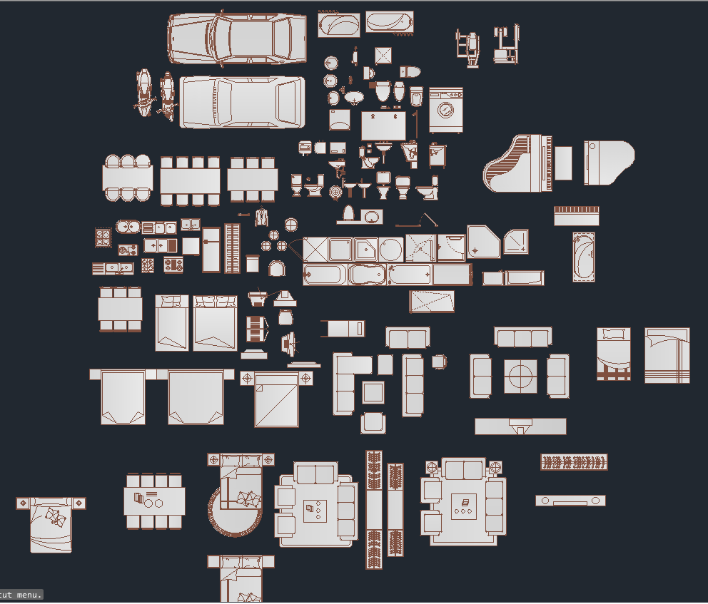 - Hơn 100 Block Động thiết kế nội thất: Bàn, ghế, giường, tủ, sofa, đèn, v.v.